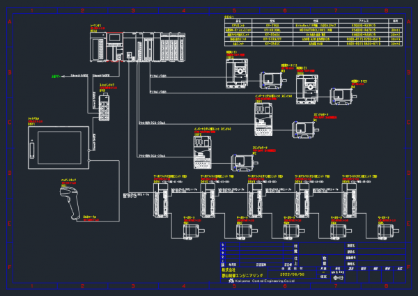制御盤のセミオーダーからフルオーダーまで対応しております。また、お客様の図枠に基づき図面作成にも対応しました。